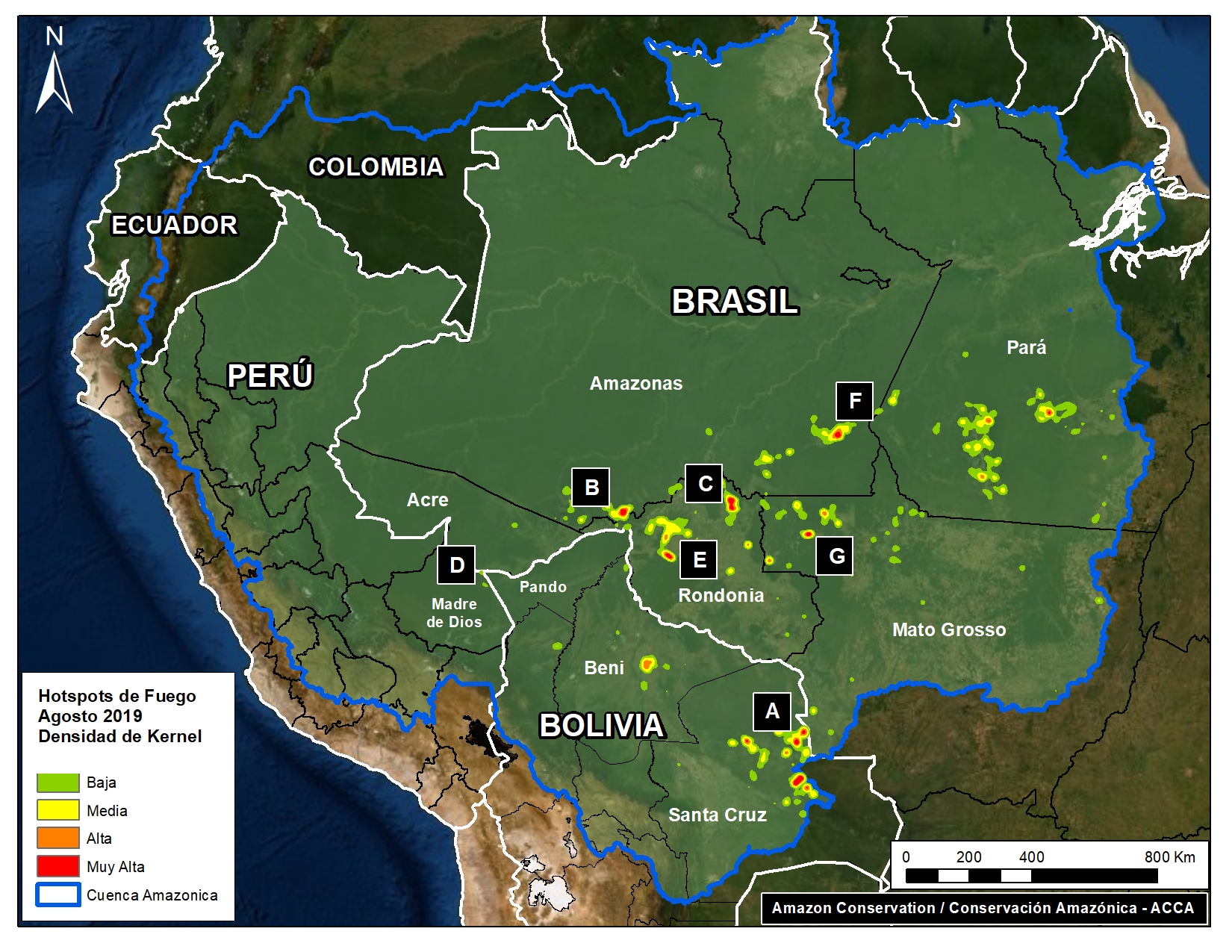 . - Insistimos en advertir contra el uso de datos de detección de fuego como medida única de impacto en los bosques Amazónicos. Muchos de los fuegos detectados están en áreas agrícolas y no necesariamente representan incendios forestales.
