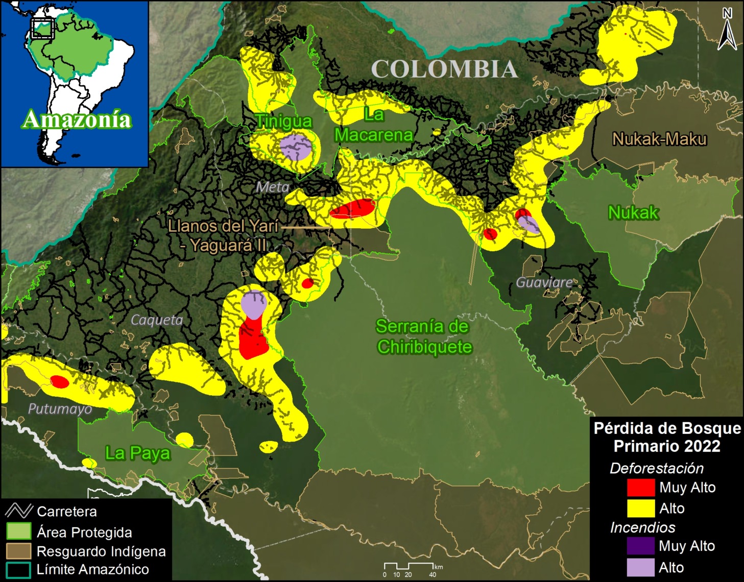 El Mapa Base de Colombia muestra que sigue habiendo un «arco de deforestación» en el noroeste de la Amazonía colombiana (departamentos de Caquetá, Meta y Guaviare).