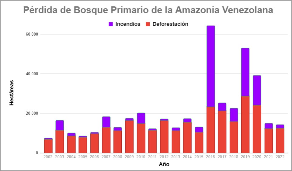 k - En total, 2,47 millones de hectáreas de bosque primario se vieron afectadas por la deforestación y los incendios. Este total representa el tercer más alto registrado, solo detrás de los años posteriores al fenómeno de El Niño en 2016 y 2017.