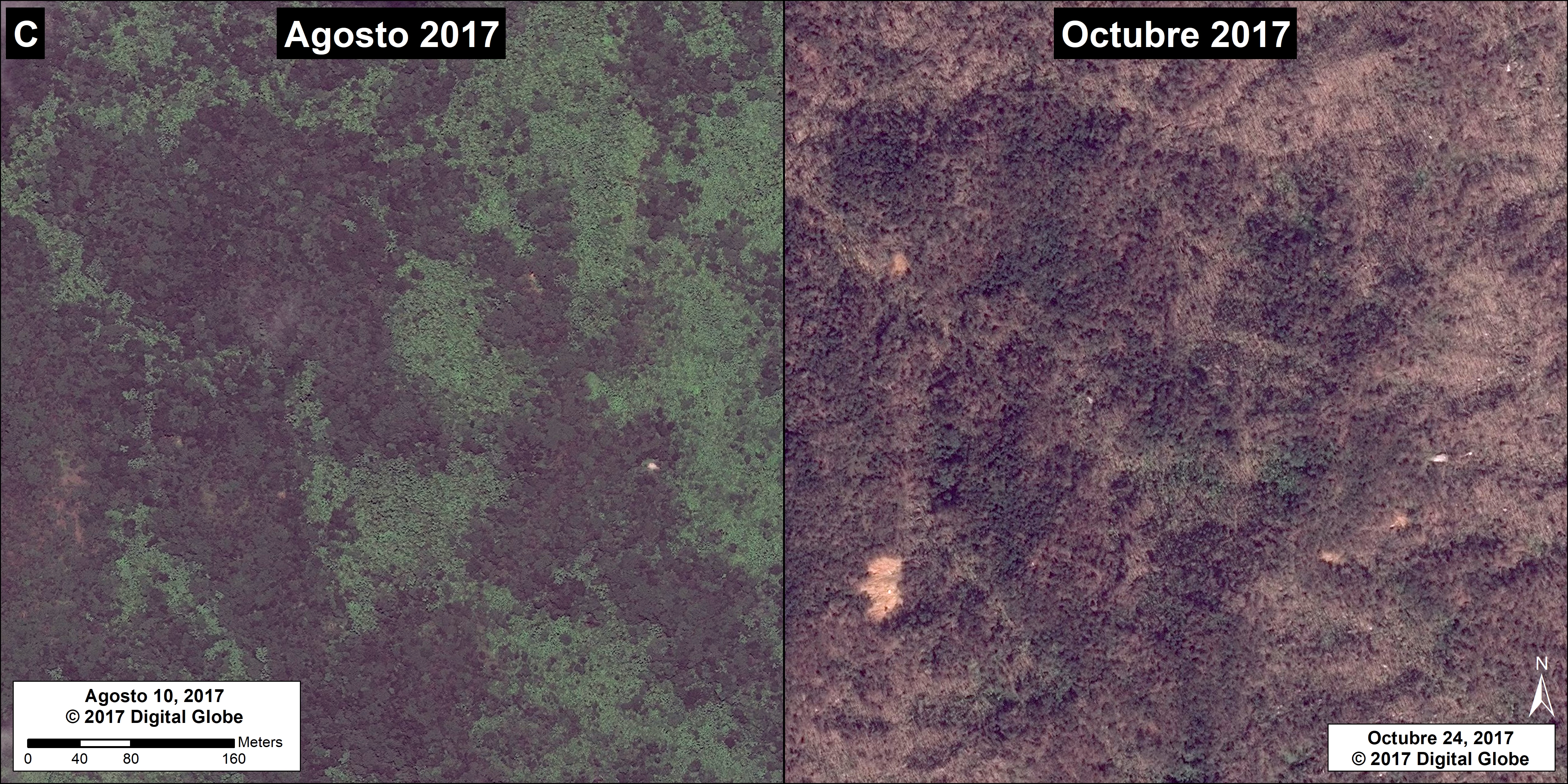 A partir del 2018, ACCA lanza un nuevo proyecto, financiado por el Desafío Google, para desarrollar un mecanismo de monitoreo de las concesiones forestales de castaña, que cubren un millón de hectáreas en el sur de Perú. La siguiente imagen muestra una nueva plantación de papaya que causó la deforestación de dos hectáreas al interior de una concesión de castaña.